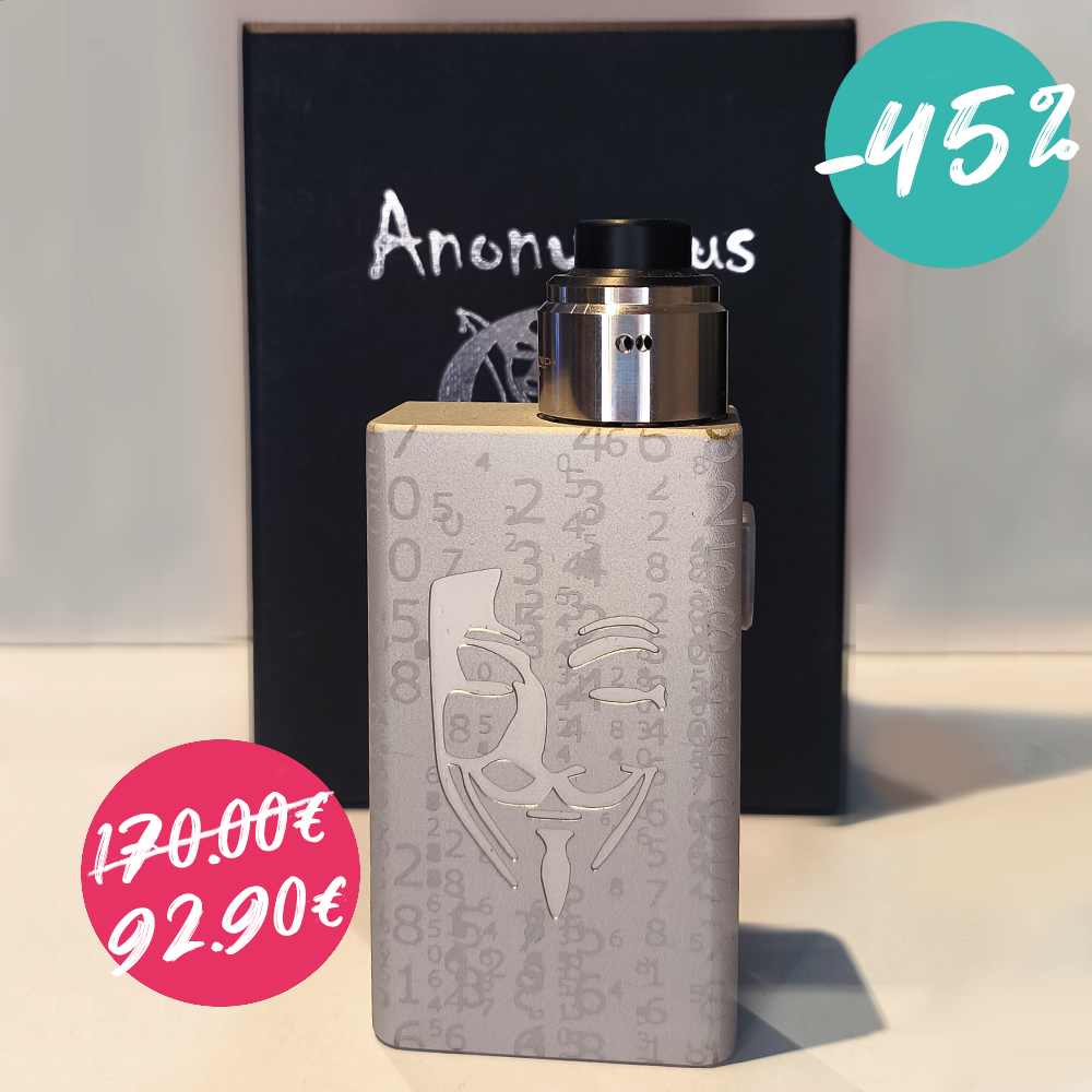 Box mod meccanica compatta con misure ridottissime, costruita interamente in alluminio ed estremamente conduttiva, grazie alle lame in ottone e placcate argento 999 di cui è dotata. Anonymous Box mod è adatta a batterie 18650 (non incluse). La boccetta , fornita in dotazione, è capiente 8,5 ml ed è in silicone alimentare. Il pin dell’Anonymous Box mod è regolabile.