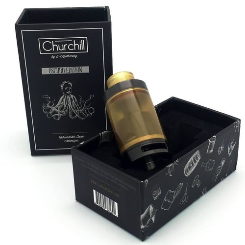 Il Churchill RTA è un atomizzatore rigenerabile da polmone (DL) in stile “flavour oriented”: deck postless e camera piuttosto compatta, pensato per essere molto semplice da rigenerare e cotonare. La variante “Oscuro Edition” è una versione estetica scura del Churchill.