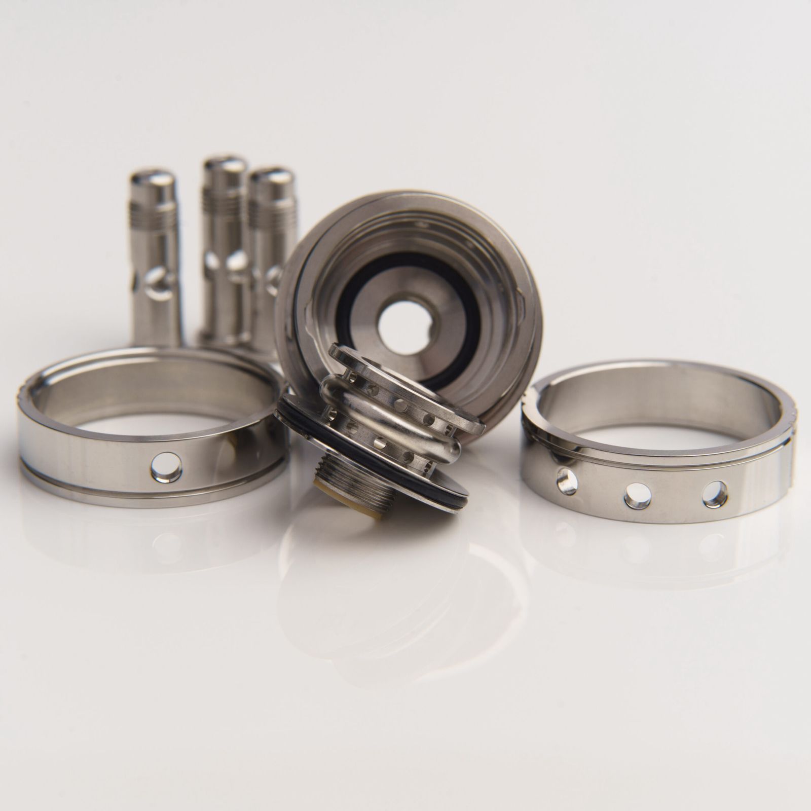Al centro del sistema è presente il nuovo air diverter derivato dalla versione RDL, dotato di 24 fori dell’aria da 0,9 mm lavorati con precisione, progettati per garantire un flusso d’aria più uniforme e pressurizzato. In combinazione con gli AFC ring classici a 1 e 3 fori, questa configurazione offre un tiro estremamente fluido, silenzioso e costante, indipendentemente dallo stile di svapata.